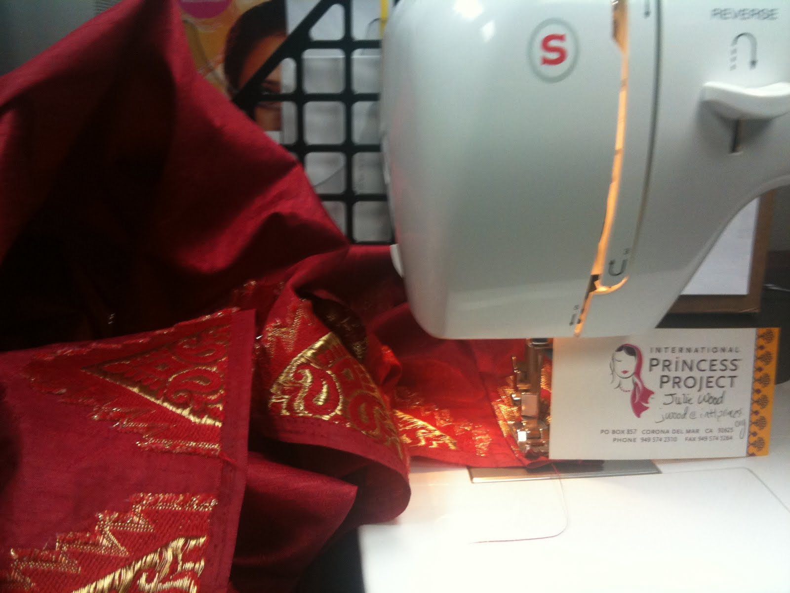 Today Monica, a faithful volunteer for IPP, and I sewed table runners (from beautiful sarai cloth) for the upcoming fundraiser in Huntington Beach CA.